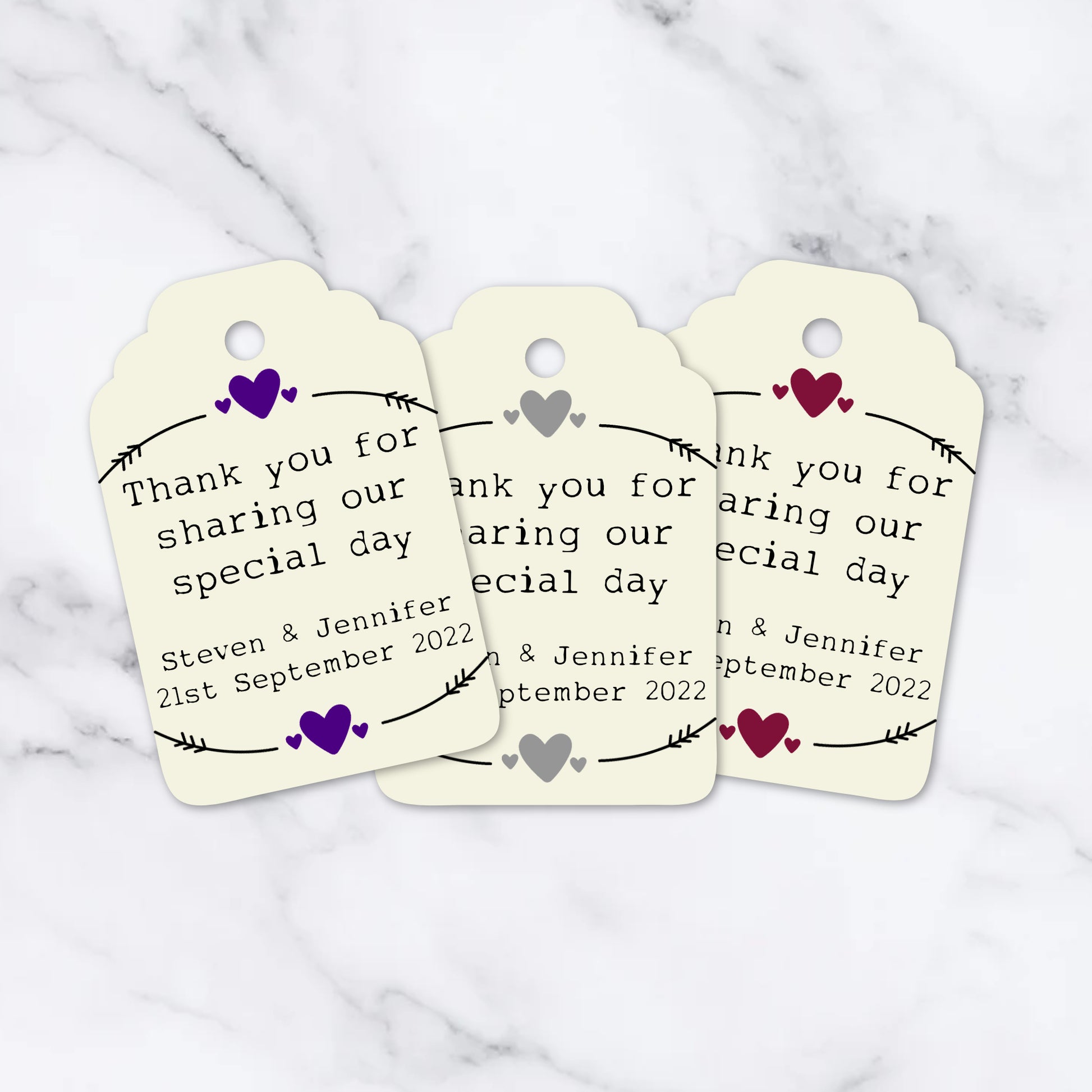 Add a personal and elegant touch to your special day with our Personalized PK15 Wedding Thank You Favour Tags and make your wedding or anniversary celebration unforgettable!