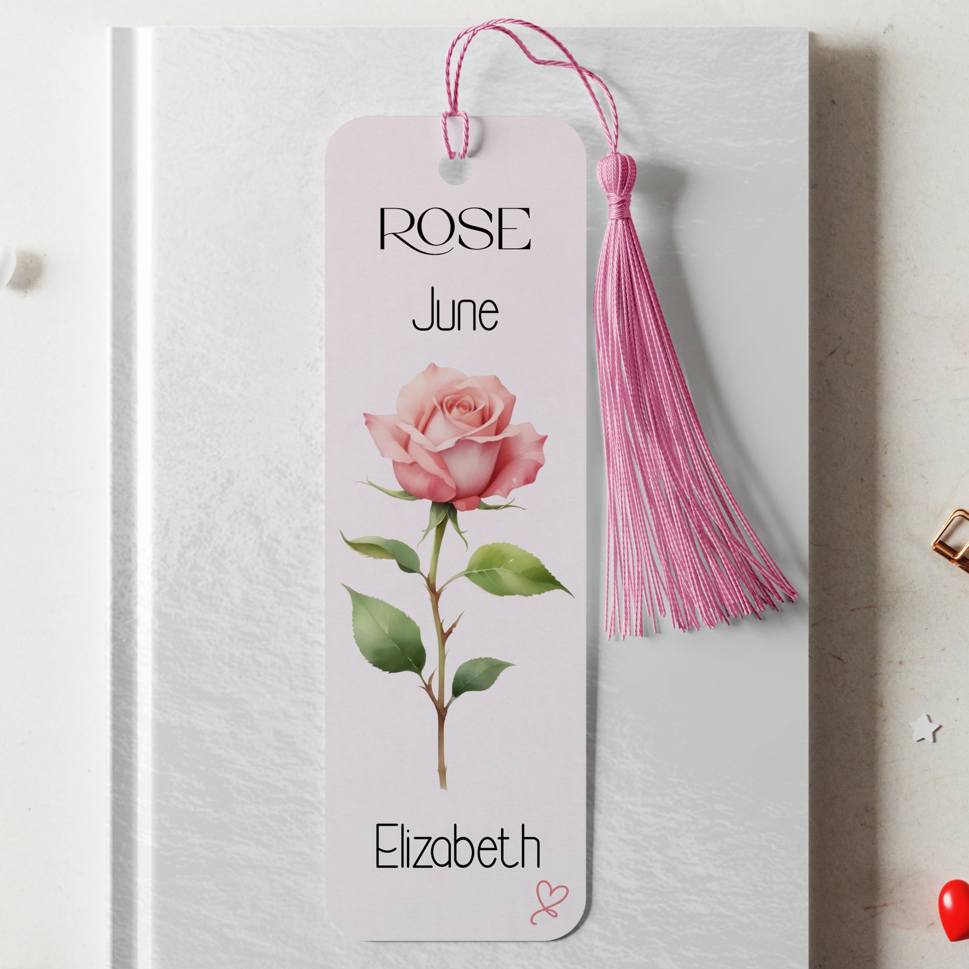 PERSONALISED BIRTH FLOWER METAL BOOKMARK WITH TASSEL