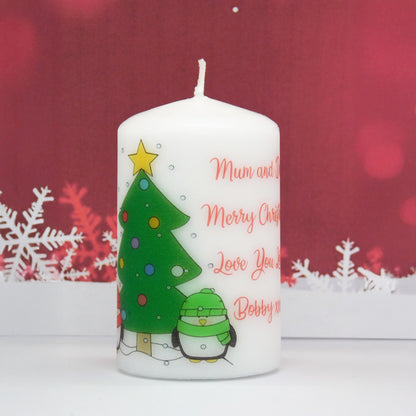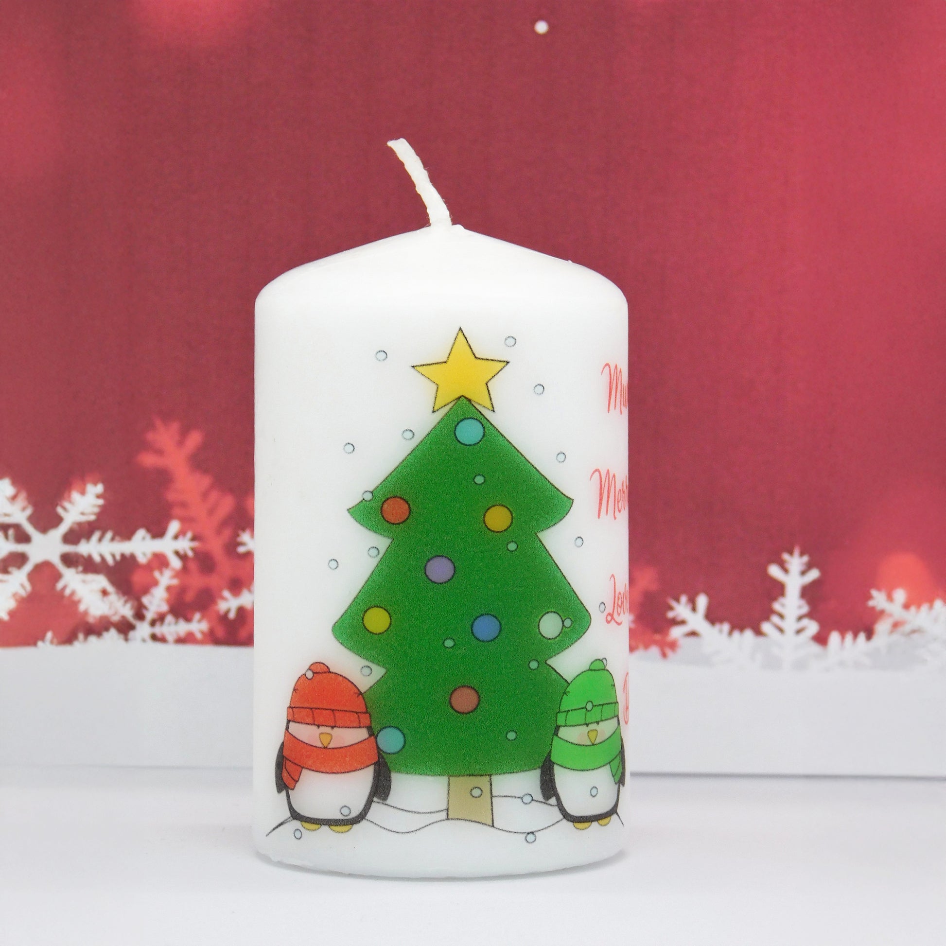 The charming Santa or penguin and Christmas tree motif add a playful and joyful touch to your Christmas décor. This candle is not only a beautiful decoration but also a keepsake that your loved ones will cherish for years to come.