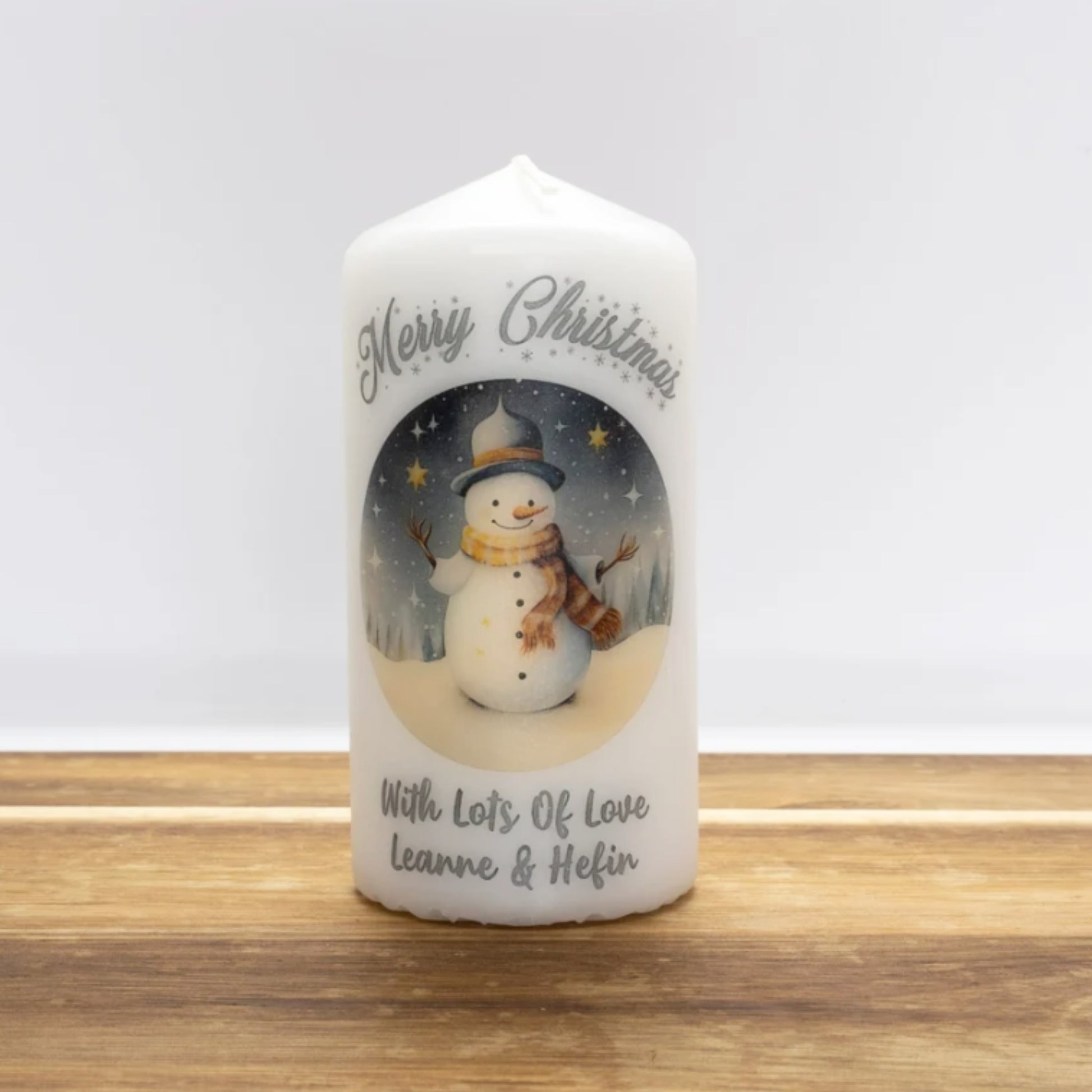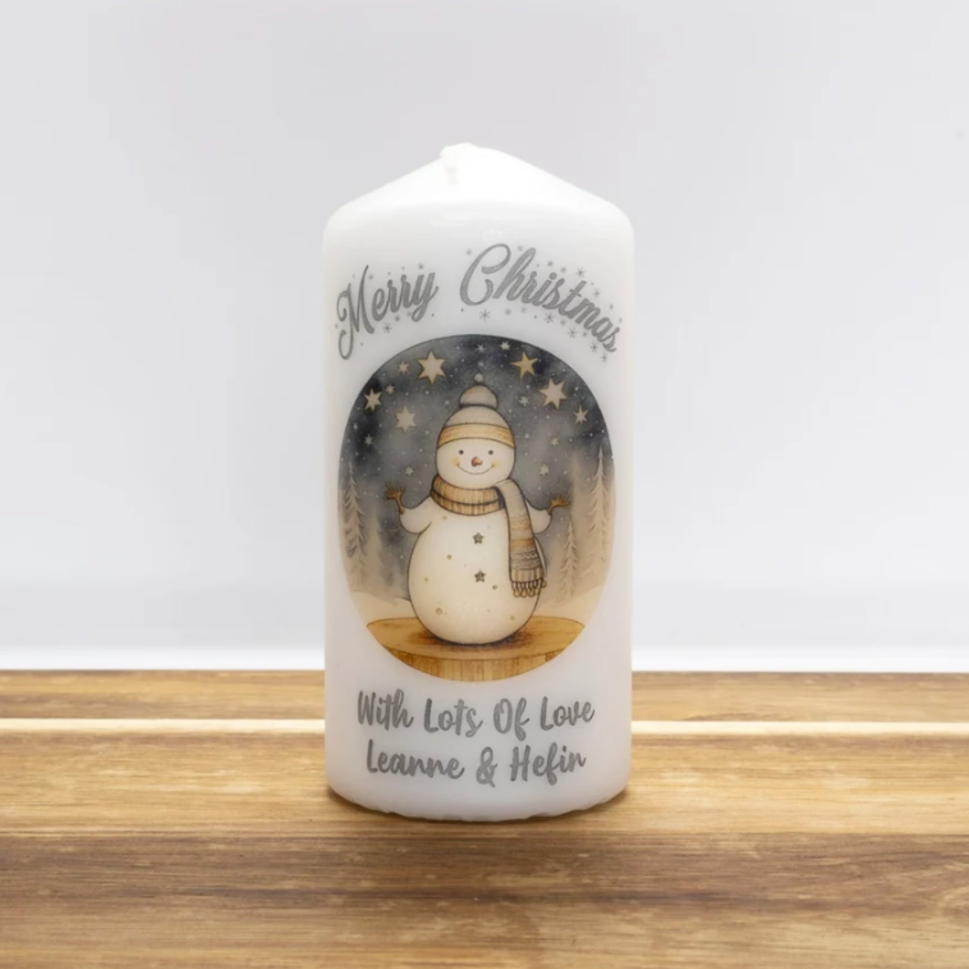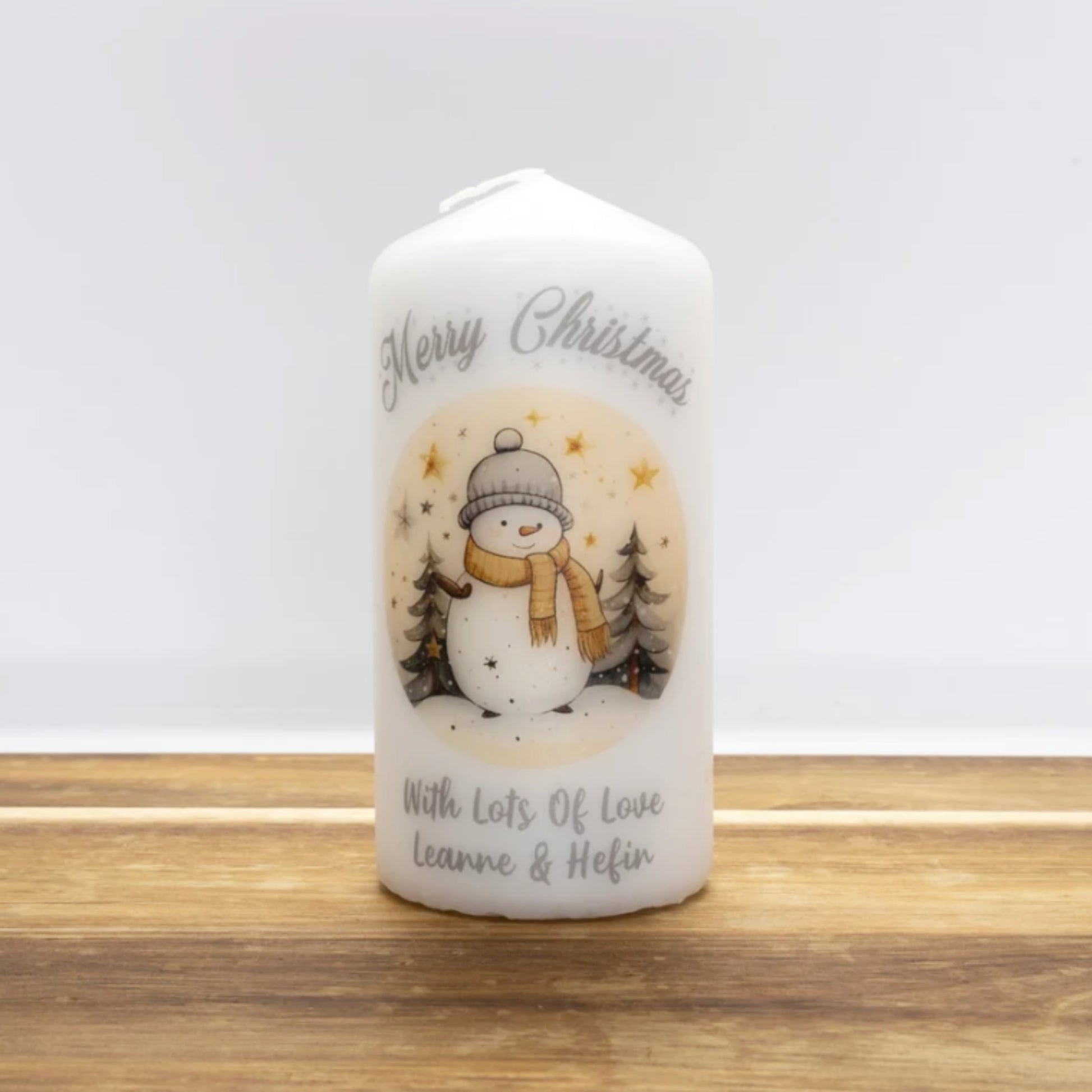 Bring festive warmth and charm to your Christmas with this beautifully personalised Christmas candle, each featuring a classic snowman illustration. A perfect gift for Mum, Dad, grandparents, friends, teachers, or neighbours—these candles add a thoughtful, decorative touch to any Christmas celebration.