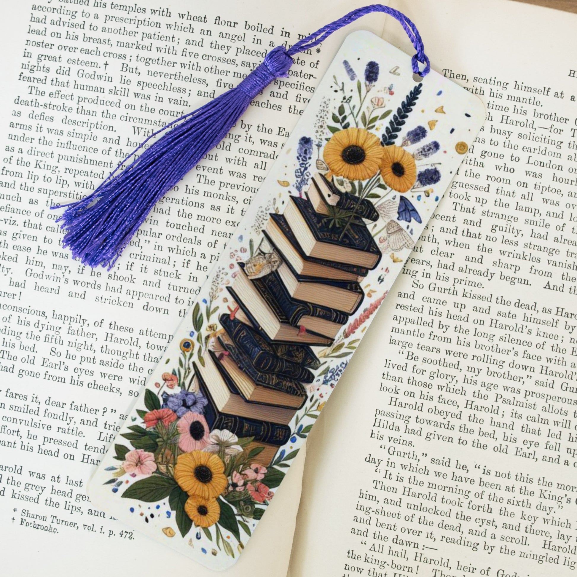 Brighten your reading routine with this charming metal bookmark, featuring a warm sunflower and stacked books design that captures the joy of cosy moments spent with a good book. Paired with a bold purple tassel, it’s the perfect accessory for book lovers who enjoy a touch of seasonal cheer in their reading nook.